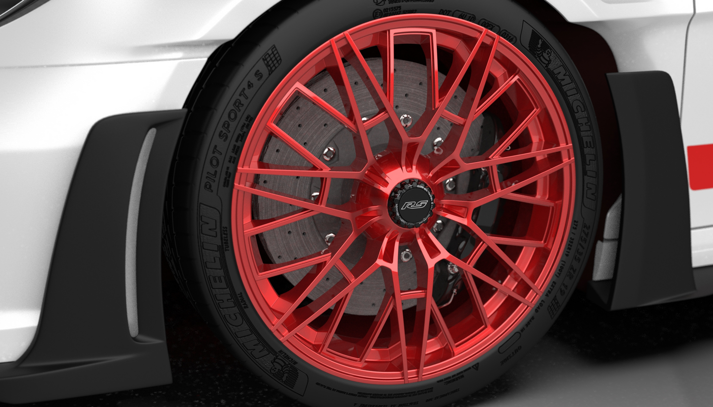 The Porsche 911 GT3 RS flunts great-looking wheels light on their feet and with enough technical sensitivy and complexity to intrigue many bystanders on race track. We thought we could pretend that we are aftermarket wheel manufacturers designing a better looking wheel than the original. We thought it be a good idea to add a bit of modern twist with disc wheels - that improves the aerodynamic performance in downforce by being attached to the rear-wheel. They also are style statements even though for some on-lookers the benefit may be marginal. Anyway we had to give it a go.