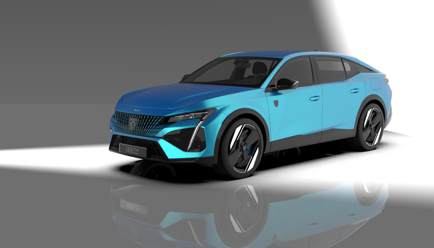 Peugeot's currently offering super modern-looking wheels with very sharp faceted design language and new arrangement 0 4 spokes with only 2 different elements, different from anyone on the market. We thought it would be worth trying and designing using the same arrangement but with different taste, still making it look consistent of the style that the 408 lavishes.